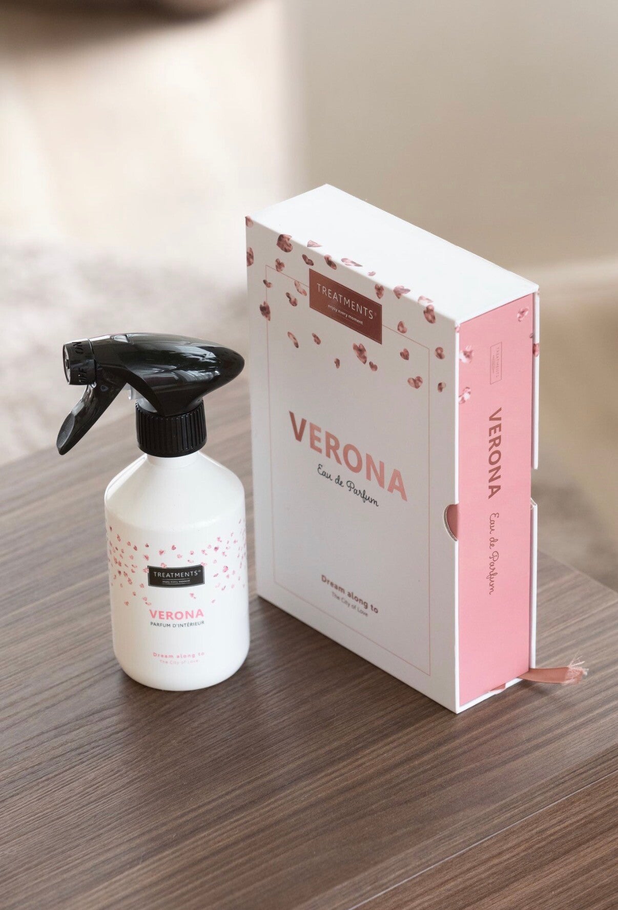 Transformeer uw huis in een oase van geur en stijl met de exclusief geparfumeerde Verona Parfum d’Intérieur van Treatments®. Met de zorgvuldig samengestelde geurformule, creëert u onmiddellijk precies díe unieke ambiance, die perfect aansluit bij uw persoonlijkheid, uw humeur of de uitstraling van uw interieur. Met slechts een enkele nevel hier en daar, neemt de verfijnde geurcombinatie van framboos, rozenblaadjes, roze peperkorreltjes en amber uw zintuigen mee op een heerlijke droomreis naar het romantische Verona.
